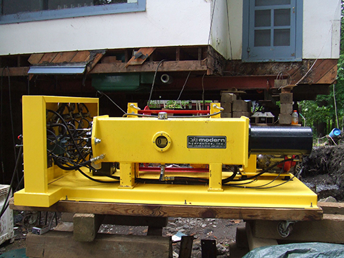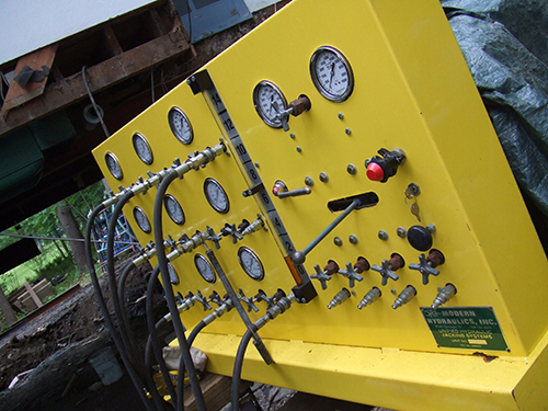 This is our Modern Hydraulics Unified Jacking system. Made in America, this system keeps the jacks moving at the same rate. This means the building will not be twisted or stressed by points surging ahead or lagging behind.