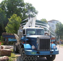July 3rd, 2004 was launch day. Since we could not back our semi truck into the water, we switched over to a dolly in the front. A cable restraint system tied to two semi trucks provided additional brakes in case the slope of the boat launch became too much for the Dollie brakes. A front end loader provided the push to get the boat into the water. It took the entire morning to rig up the system and back the boat to the edge of the water, where the move was stopped for the formal launching ceremony.