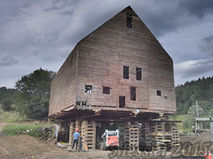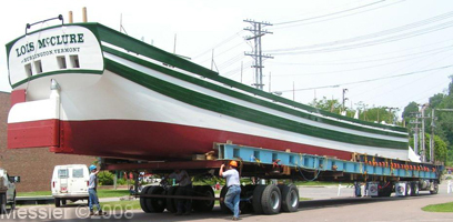 The Vermont Maritime Museum called us in to look at an interesting project. They were hand building a full-size replica of an 1860s canal schooner that had once transported cargo across Lake Champlain. Unfortunately, there was no easy access to lake outside the structure they were constructing it in. We worked out a plan to lift, support, transport, and launch the boat for them.