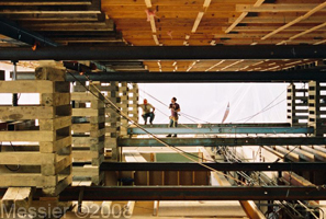 The building had to be usable by the start of the next semester, so we had to move quickly and with minimal damage to the rest of the building. We manufactured our own scaffolding, an industrial strength version that could handle tons of beams, blocking, and hydraulic equipment.