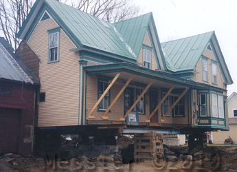 Lifted four feet for a new foundation to be installed and was completed in mid April 2010.